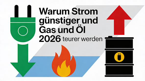 Warum Strom günstiger und Gas und Öl 2026 teurer werden