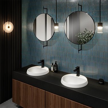 Die Komplettbadkollektion wurde zudem um passende Armaturen ergänzt: Die Armaturenserie Architectura umfasst gefällige, zeitgemäße Armaturen mit klassischer Chrom-Oberfläche, deren Design runde Armaturenkörper mit flachen, eckigen Ausläufen und Hebeln kombiniert. Die Armaturenserie Architectura Square setzt hingegen auf eine klare, geometrische Formensprache mit Ecken und Kanten und ist in den vier Oberflächen Brushed Gold, Brushed Nickel, Black Matt Black und Chrome erhältlich. Das Armaturensortiment besteht aus jeweils drei Einhebelmischern für Waschtische: eine Wandauslaufarmatur sowie zwei Standarmaturen mit Abdeckring, wobei sich die erhöhte Variante zum Kombinieren mit Aufsatzwaschtischen anbietet. Ausgestattet mit hochwertigen und langlebigen Komponenten von europäischen Marktführern bieten sie neben einem aktuellen Design praktische Features für besten Nutzungskomfort und mehr Nachhaltigkeit. So sind alle Armaturen mit EasyClean-Strahlreglern ausgestattet und dadurch besonders einfach zu reinigen und optimal gegen Kalkablagerungen geschützt. Der integrierte Strahlregler sorgt zudem für ein gutes Wassergefühl und einen kräftigen Strahl, obwohl die nachhaltige Eco-Wassernutzung den Durchfluss auf 5 l/min bei 3 Bar begrenzt.